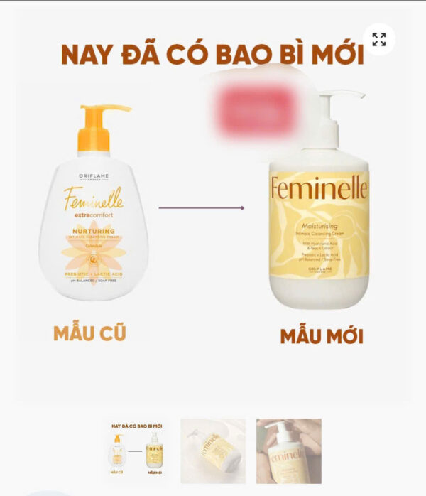 DUNG DỊCH VỆ SINH FEMINELLE MOISTURISING INTIMATE CLEANSING CREAM WITH HYALURONIC ACID AND PEACH EXTRACT.
